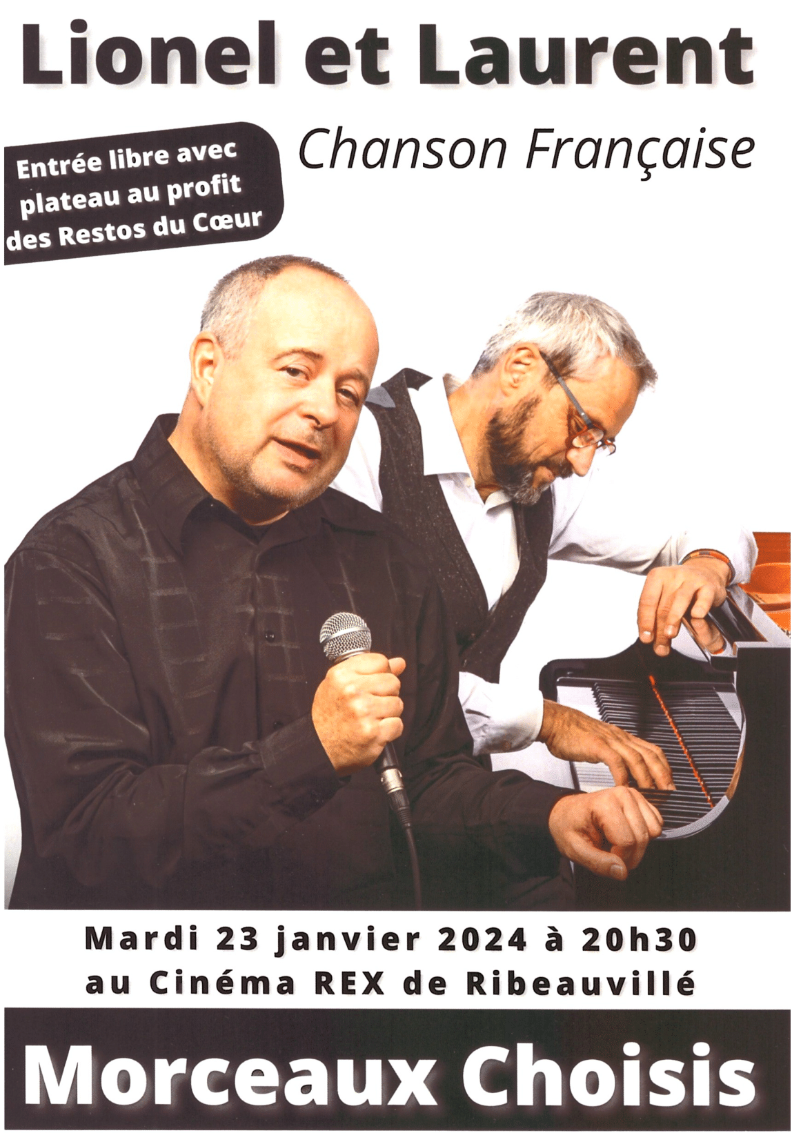 CONCERT DE LIONEL ET LAURENT 23 janv. 2024 Catégorie : AgendaAuteur : Ville de Ribeauvillé Détails de l'évènement : Date : Le 23/01/2024