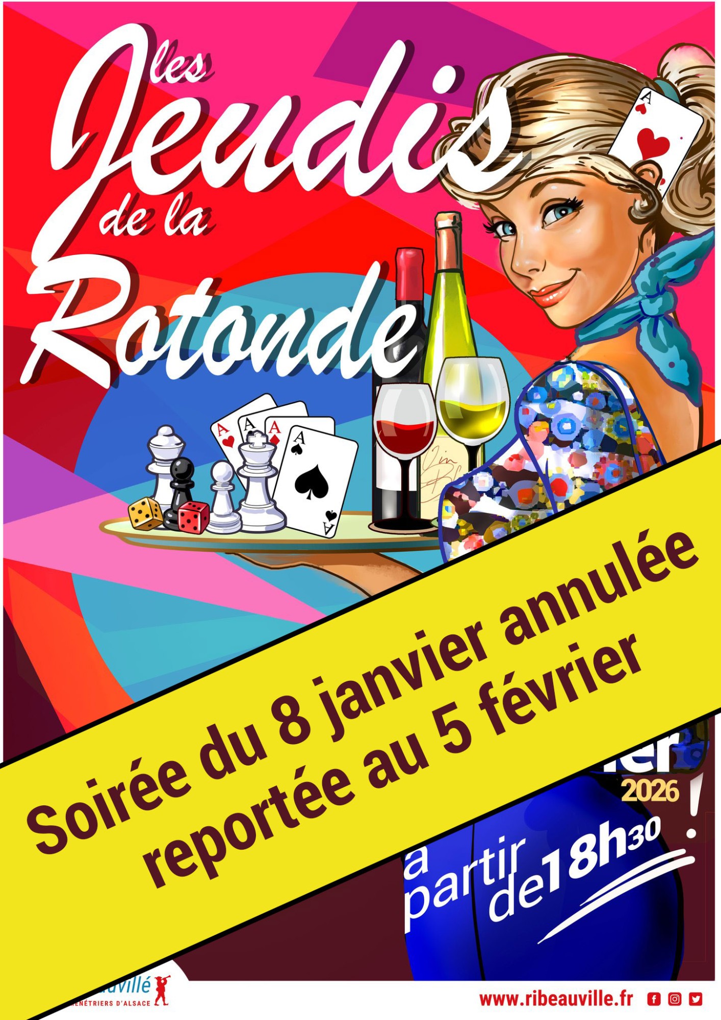 Soirée du 8 janvier annulée - reportée au jeudi 5 février pour raison technique.