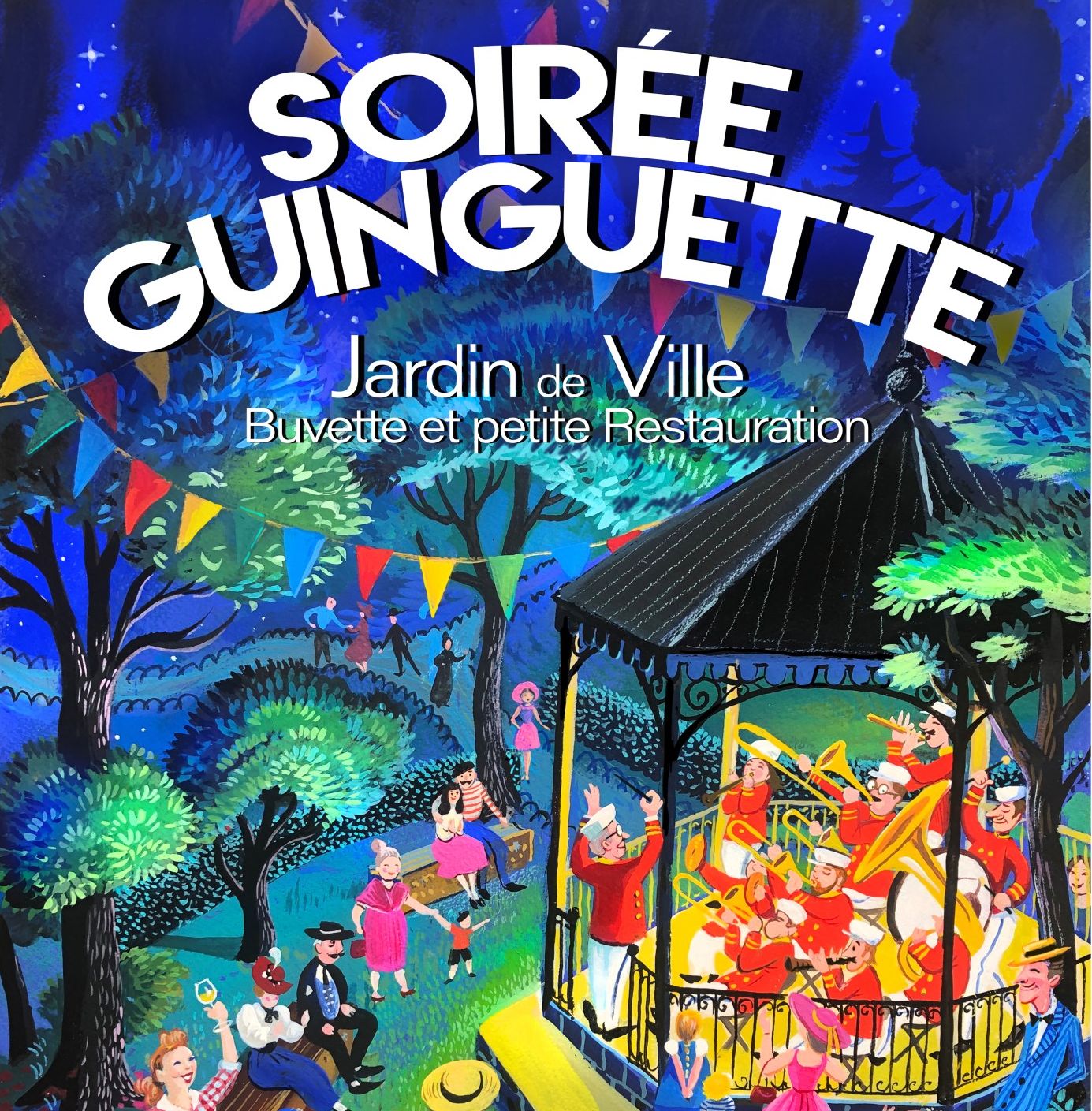 Rendez-vous au kiosque du jardin de ville pour une soirée guinguette placée sous le signe de la convivialité, la joie et la bonne humeur.