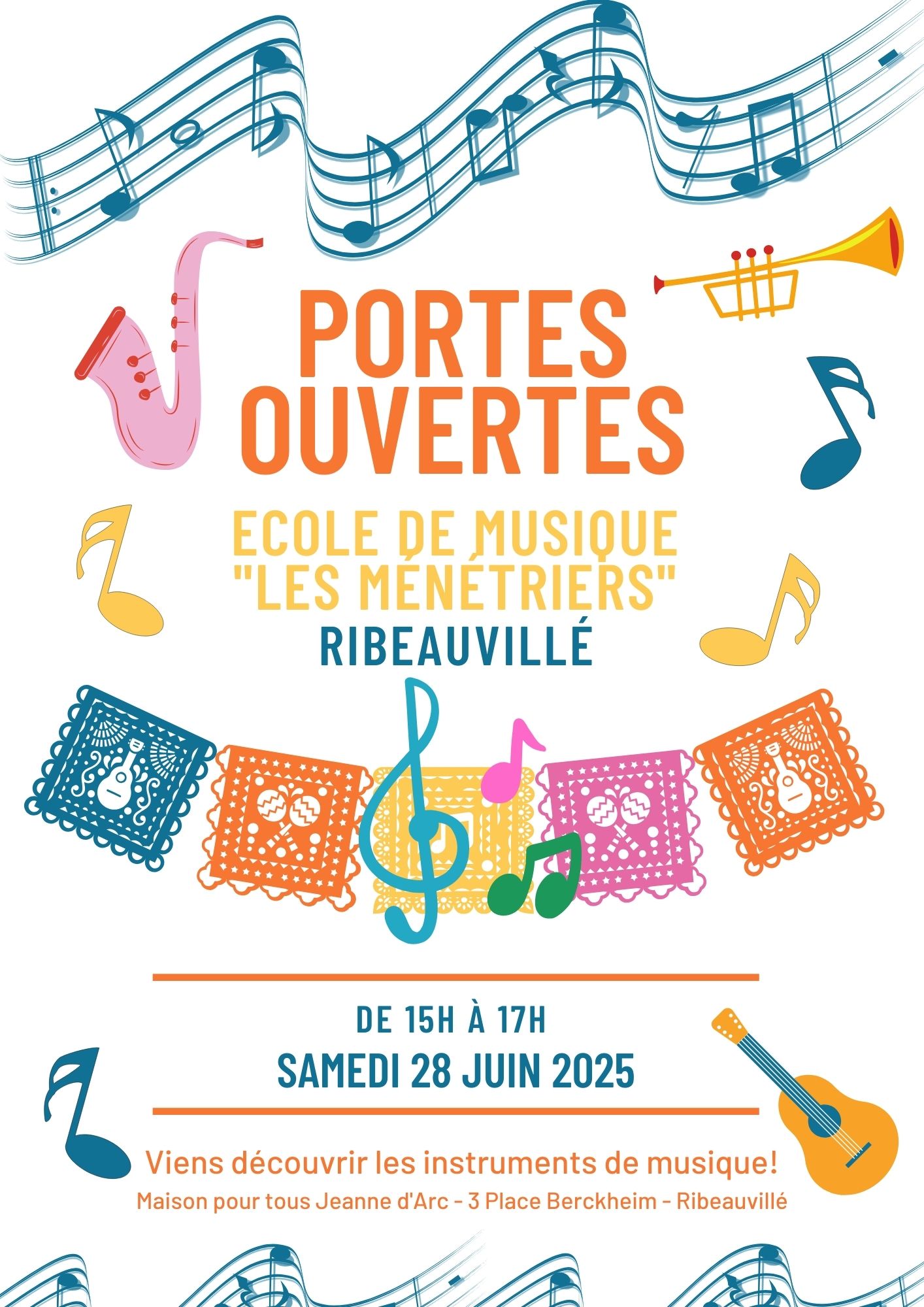 L’École de Musique de Ribeauvillé vous ouvre ses portesde 15h à 17h, dans la cour de la Maison Jeanne d’Arc.